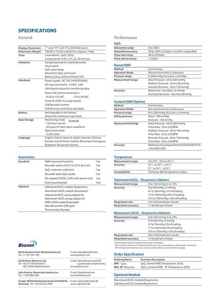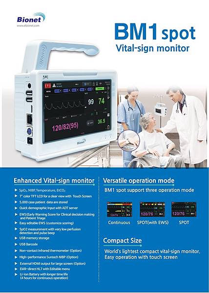 監測BP、SpO2、末端脈搏及選購體溫、ETCO2